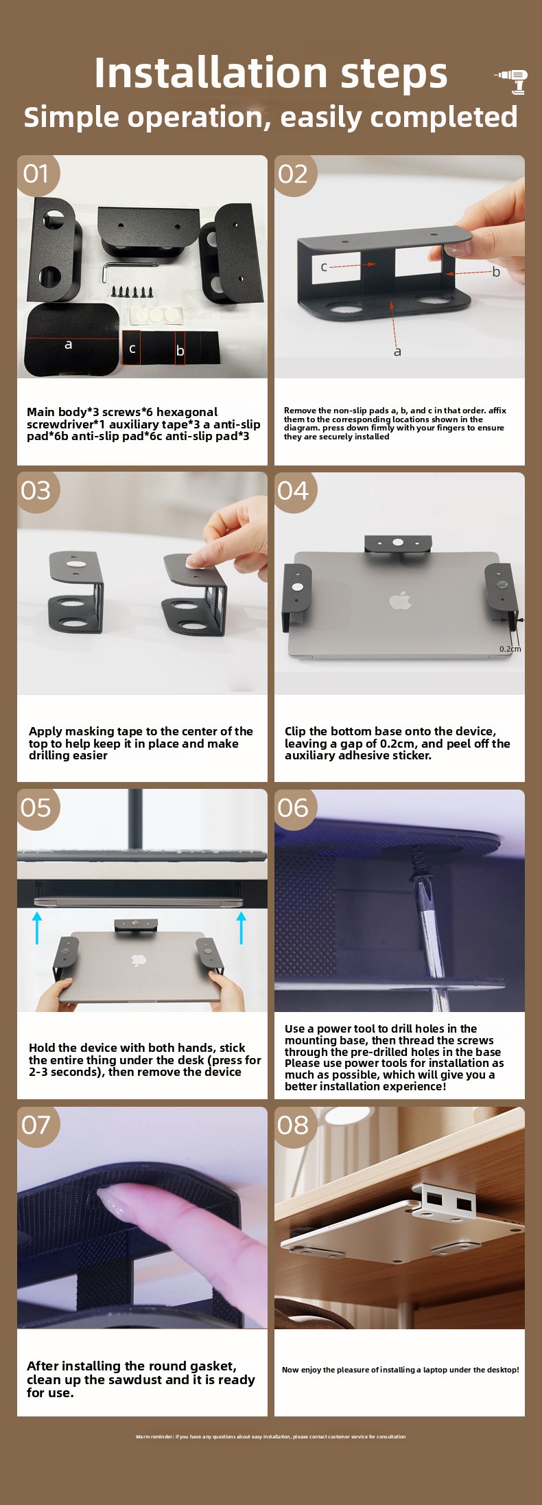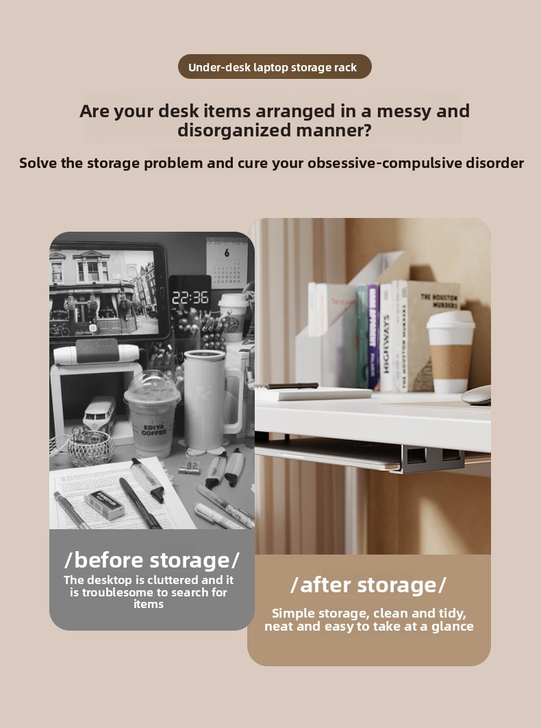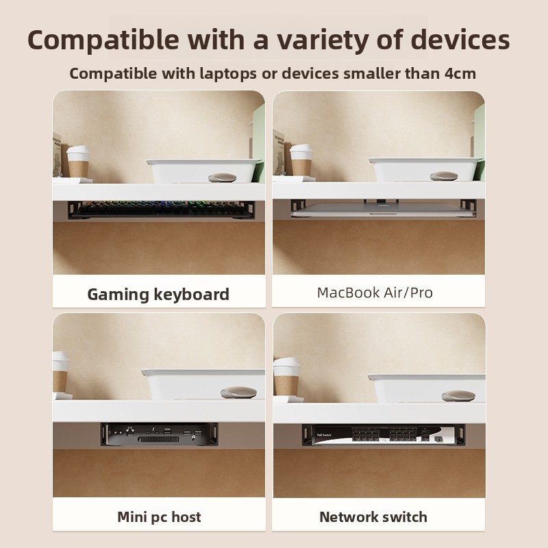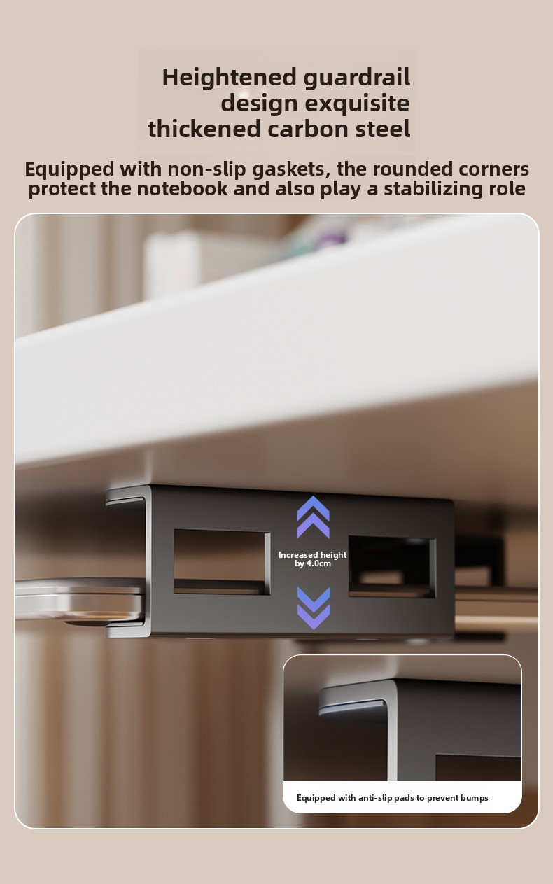 Secure fixation: Sturdy metal tray ensures stable laptop storage